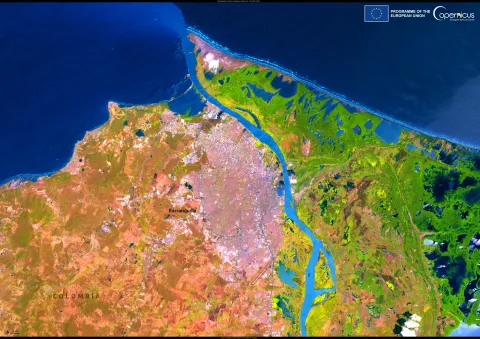 This Copernicus Sentinel-2 image, acquired on 31 March 2024, shows Barranquilla from above.