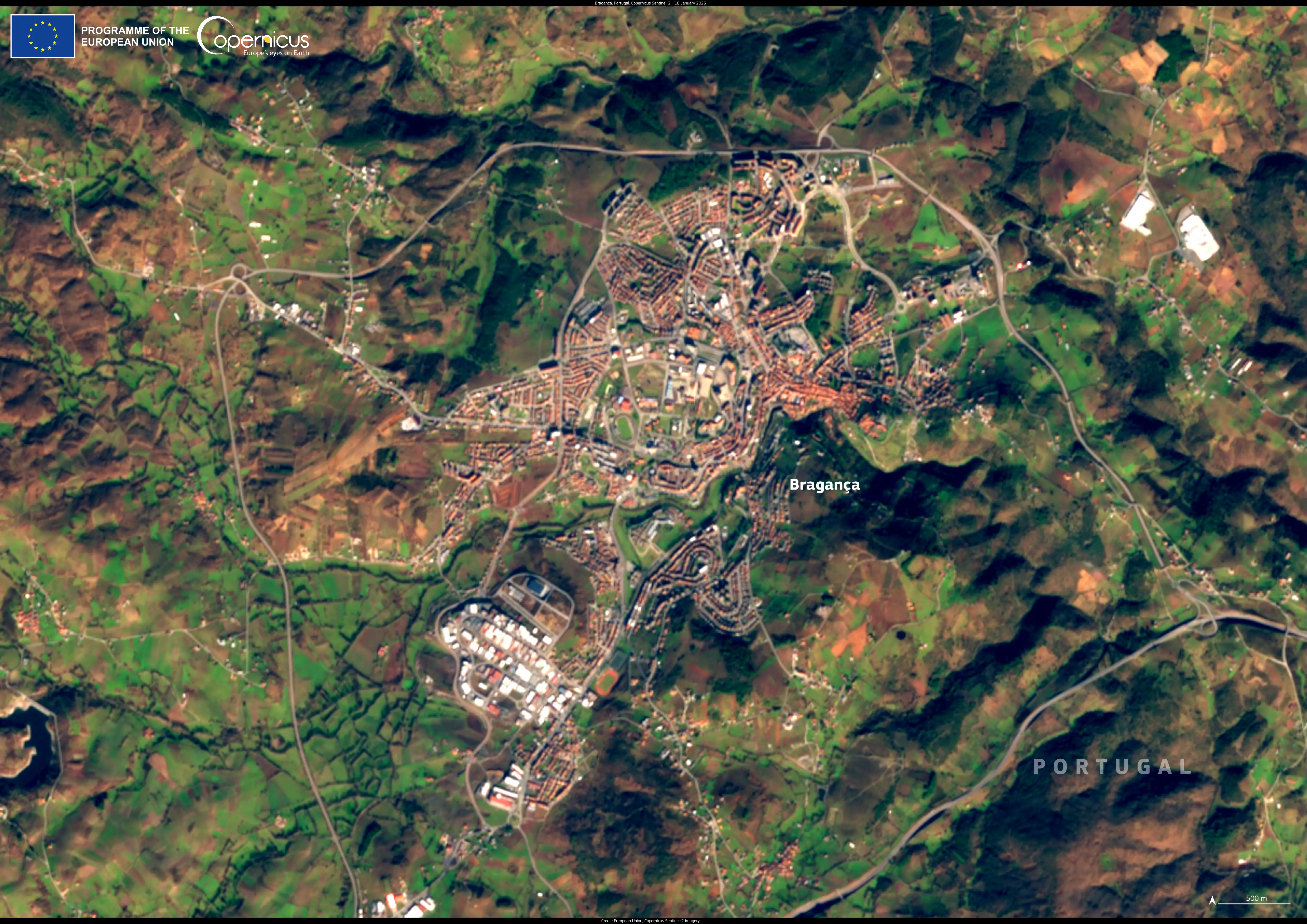 Bragança is visible in this Copernicus Sentinel-2 image acquired on 18 January 2025.