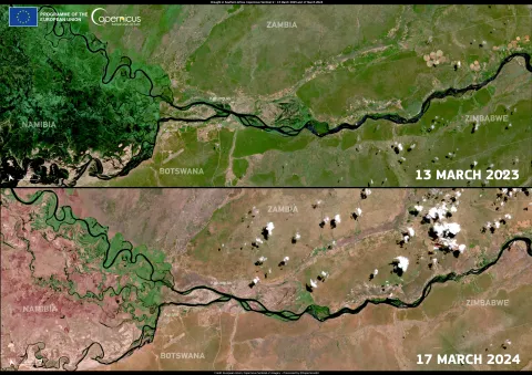 In recent months, southern Africa has been affected by a severe drought, marked by extremely dry and warm conditions. Furthermore, the Zambezi River is flowing at very low levels for the season. These extreme conditions have impacted soil moisture and crops, amplifying ongoing humanitarian and environmental crises in the region.
