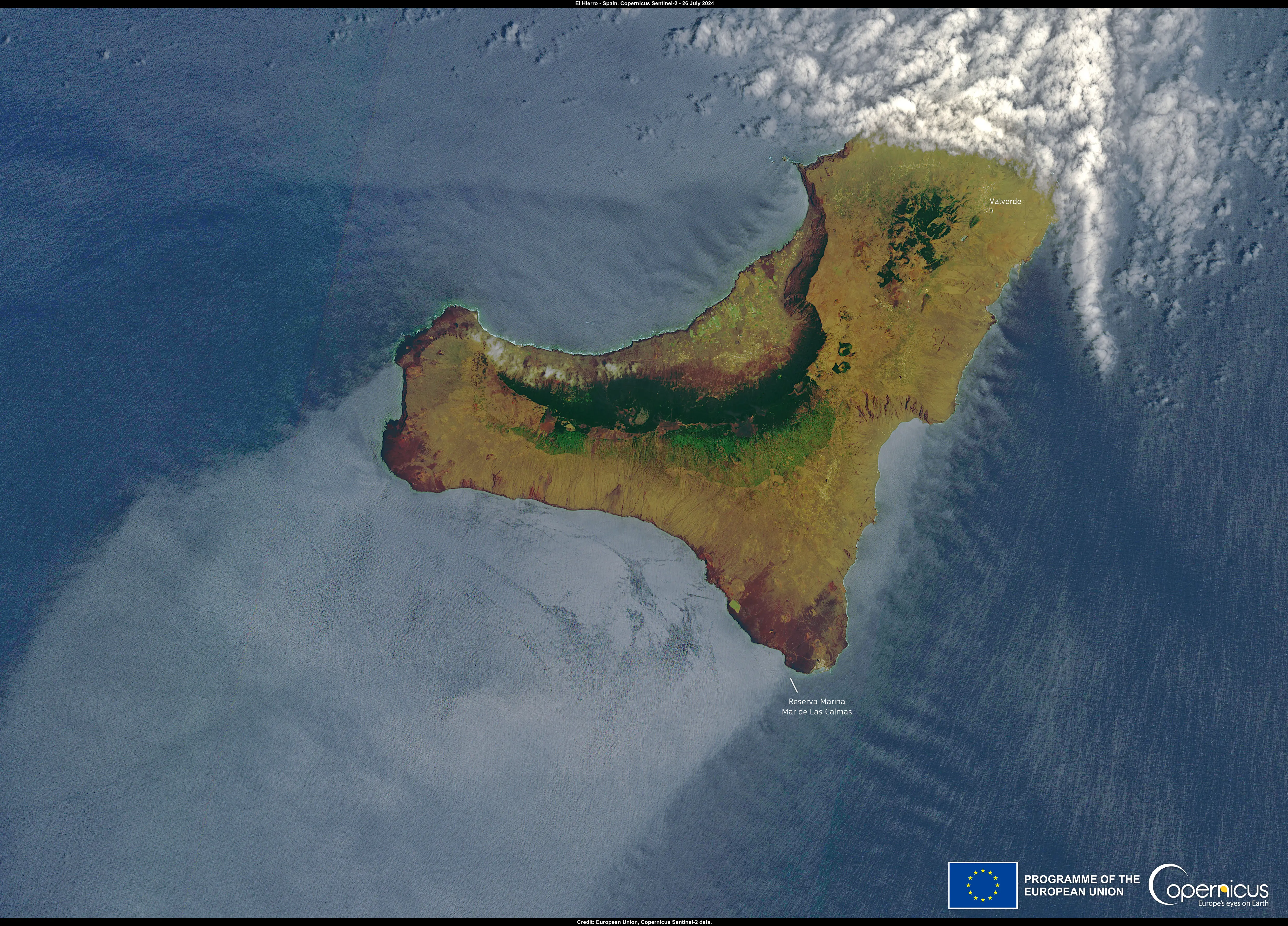 This image, acquired on 26 July 2024 by one of the Copernicus Sentinel-2 satellites, shows the island of El Hierro.