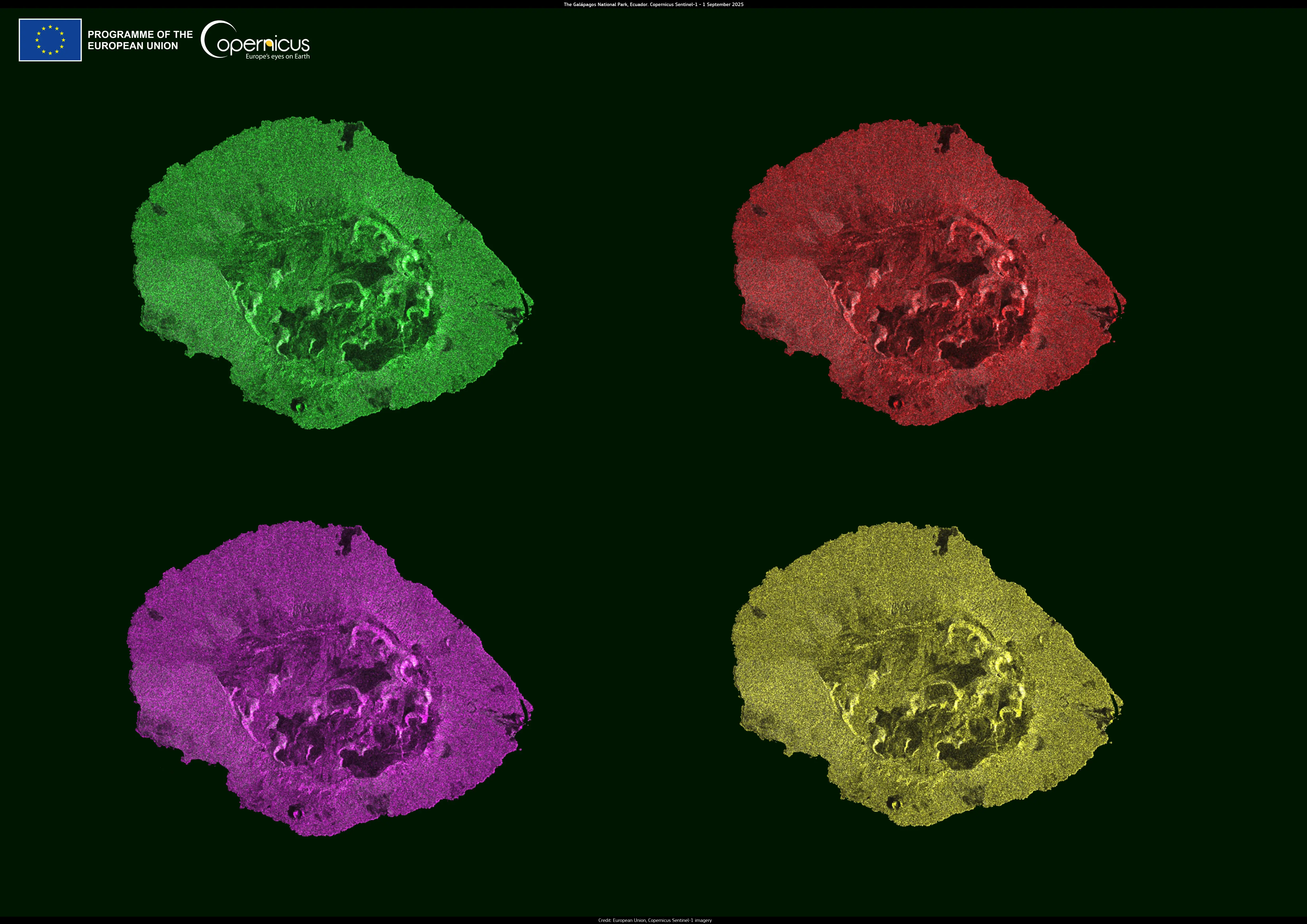 This artistic impression of the Marchena Island, part of the Galapagos archipelago, was produced using Copernicus Sentinel-1 images acquired on 5 September 2025.