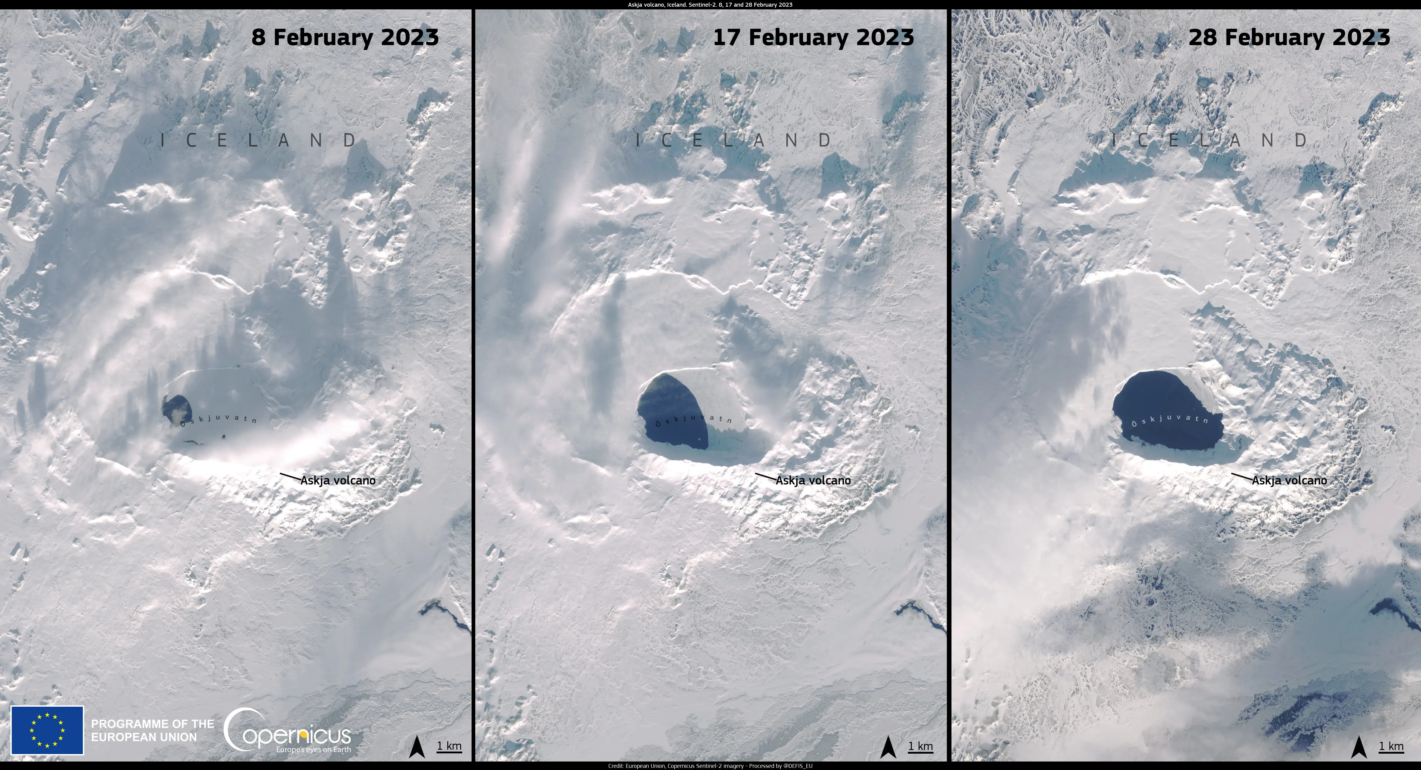 Images acquired by the Copernicus Sentinel-2 satellites on 8, 17 and 28 February 2023.
