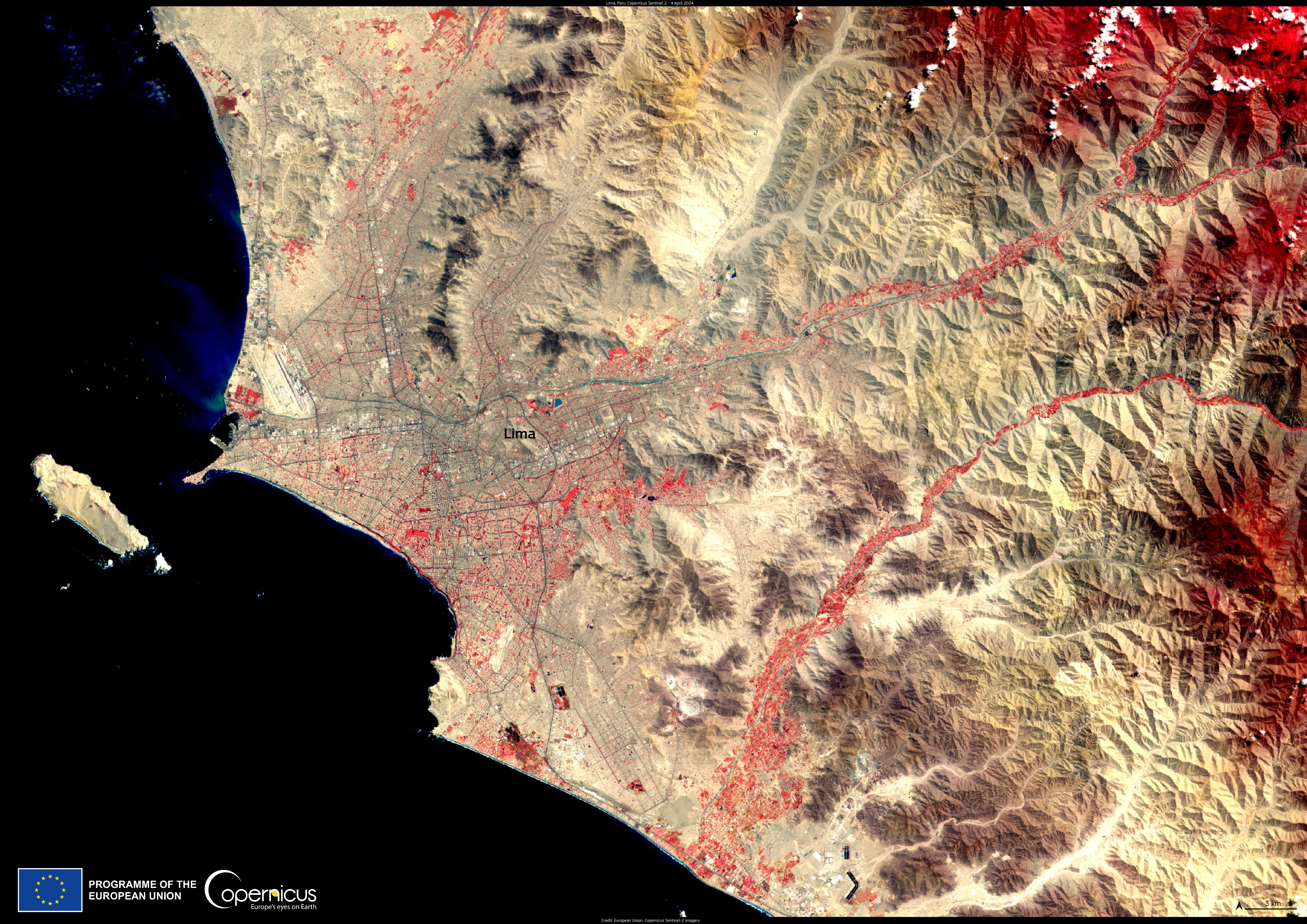 Lima is visible in this false-colour image produced with the data acquired by one of the Copernicus Sentinel-2 satellites on 4 April 2024.