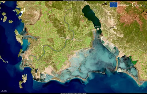 These wetlands, visible in this image acquired by one of the Copernicus Sentinel-2 satellites on 23 January, are protected under the Ramsar convention and part of the Natura 2000 Network.
