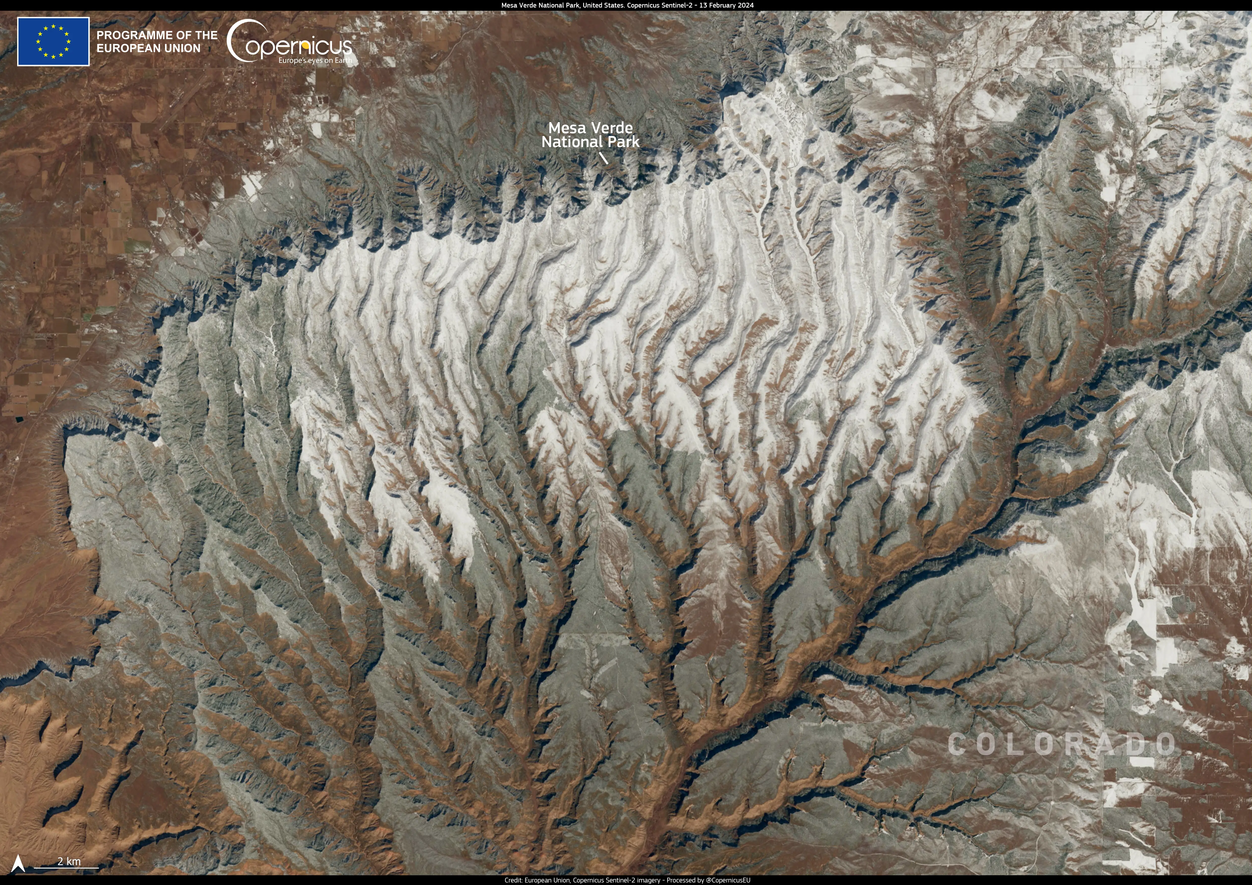 This image was acquired on 15 February by one of the Copernicus Sentinel-2 satellites. It shows the Mesa Verde National Park, a UNESCO protected site which is part of the Colorado conservation initiative.