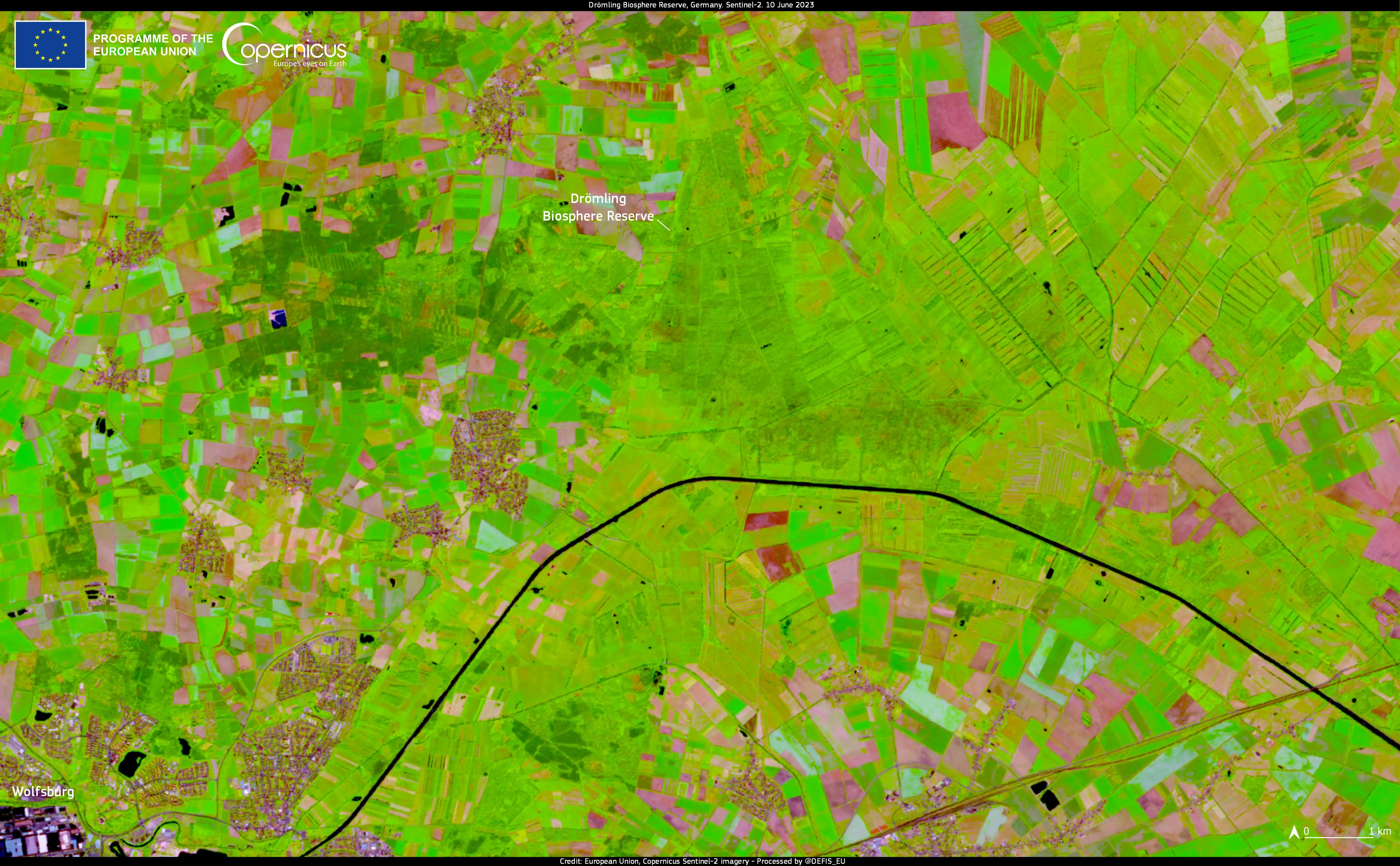 This image, captured by one of the Copernicus Sentinel-2 satellites on 10 June 2023, shows the Drömling Biosphere Reserve, one of the 11 new biosphere reserves recently designated by UNESCO.
