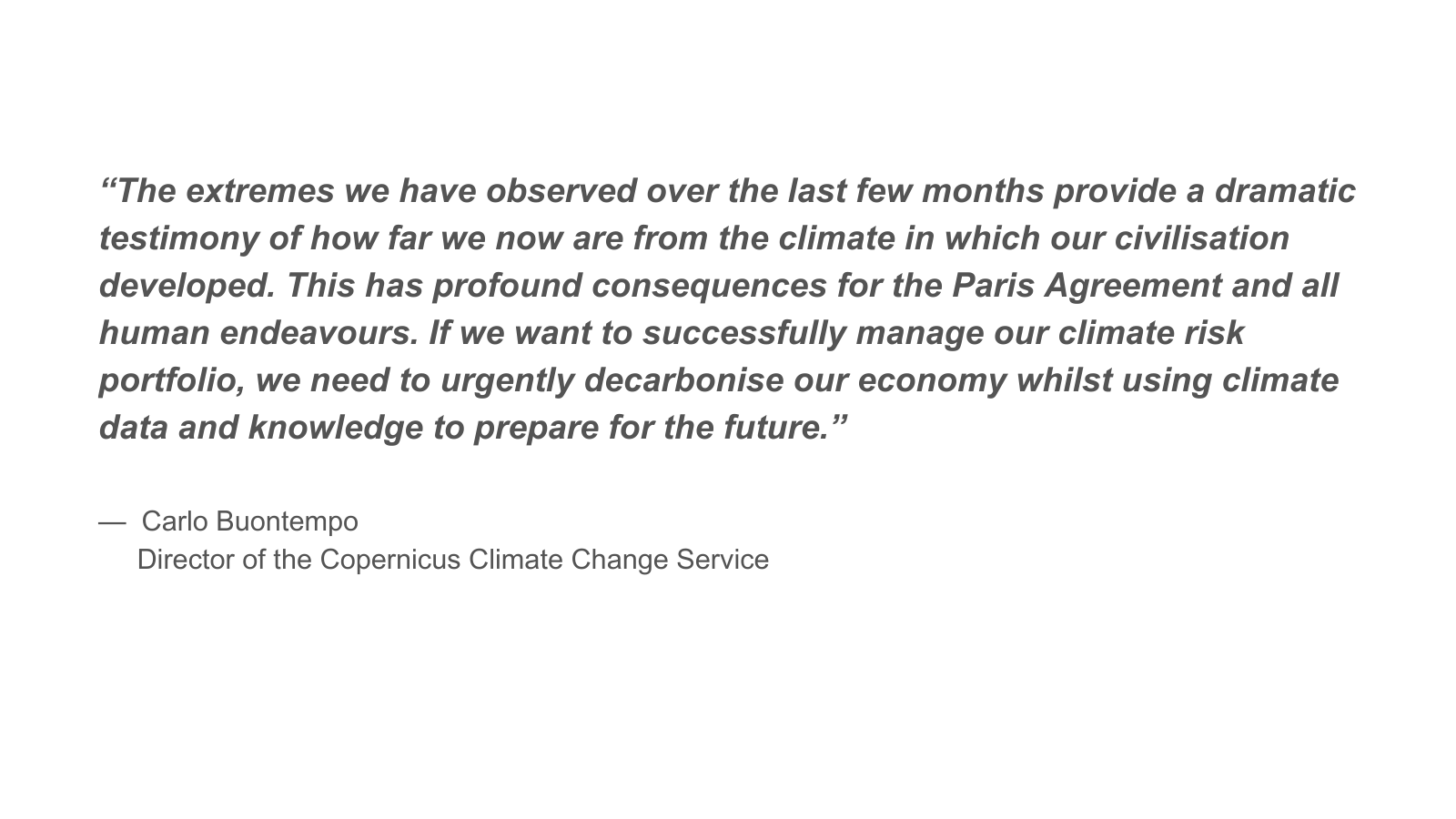Reflecting on the report’s findings, Carlo Buontempo, Director of Copernicus’ Climate Change Service, said: “The extremes we have observed over the last few months provide a dramatic testimony of how far we now are from the climate in which our civilisation developed. This has profound consequences for the Paris Agreement and all human endeavours. If we want to successfully manage our climate risk portfolio, we need to urgently decarbonise our economy whilst using climate data and knowledge to prepare for the future.”