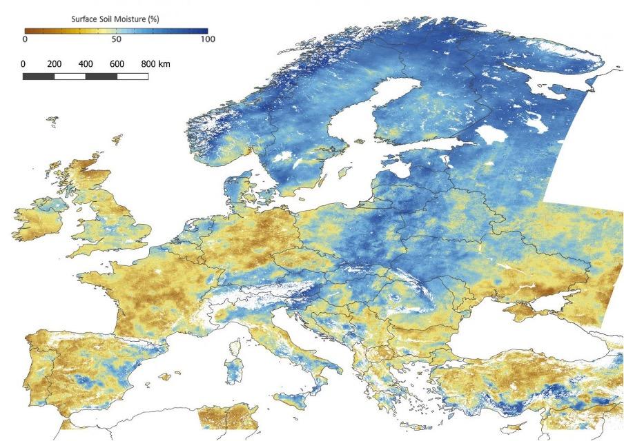 Map showing surface soil moisture in Europe, showcasing one of the many CLMS products surveying soils across Europe. Credit: CLMS