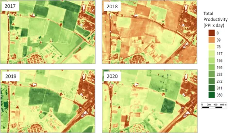 Professor Lars Eklundh and his research group at Lund University in Sweden used HR-VPP to examine the effects of the 2018 drought on croplands, grasslands and forests in six areas throughout northern Europe. To do this, they leveraged the Phenology Parameters and Seasonal Trajectories datasets from 2017 through 2020. The Total Productivity parameter, which integrates vegetation index values for a growing season, was most responsive to drought conditions. Eklundh’s group found that cropland and grassland were severely affected by the drought in 2018, and the observed decrease in Total Productivity correlated strongly with the decrease in crop yield per hectare reported by farmers.