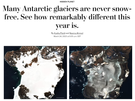By scrolling through the "Climate extremes: heatwaves, changes in ice and drought visualisations" collection of examples, users can see how scientists and EO enthusiasts have used different satellite products to raise awareness of climate change issues among online audiences. Examples include data visualisation strategies to tell stories about temperature anomalies, ocean heatwaves, sediment discharge from heavy flooding and more.