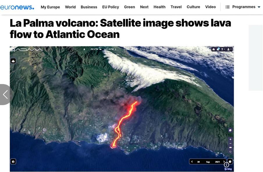 More inspiring examples can be found on the “Air quality and wildfires visualisations” page. One that particularly gained traction in recent years was the satellite visualisation of the lava flow and ash plume from the Cumbre Vieja volcano, back in 2021. Images from space not only amplified the spread of news on the event by providing powerful imagery to accompany the story, but equally helped local authorities manage the consequences of the eruption. In this way, EO-based stories can not only inform and inspire audiences, but also help us take better care of our communities.